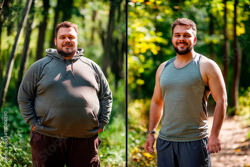 Inspiring Weight Loss Transformation:side-by-side Overweight to Fit Journey Reflecting Determination and Self-Improvement