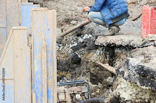 installation of metal structures - immediate support for draining soil at the construction site of the road in marshland