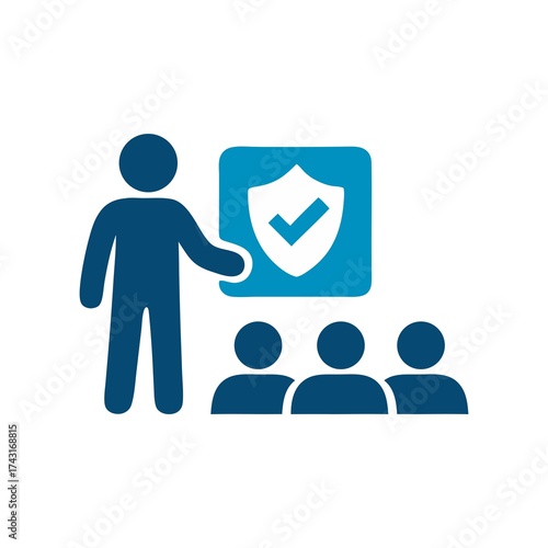 Insurance presentation with group and shield protection icon for company staff