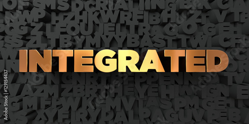 Integrated - Gold text on black background - 3D rendered royalty free stock picture. This image can be used for an online website banner ad or a print postcard.