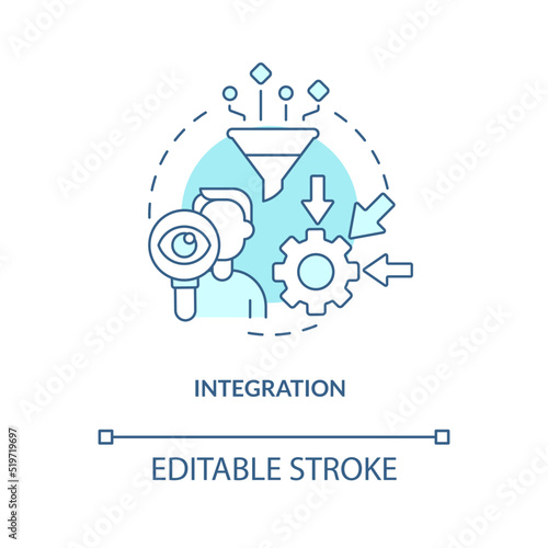 Integration turquoise concept icon. Business process. Supply chain management element abstract idea thin line illustration. Isolated outline drawing. Editable stroke. Arial, Myriad Pro-Bold fonts used