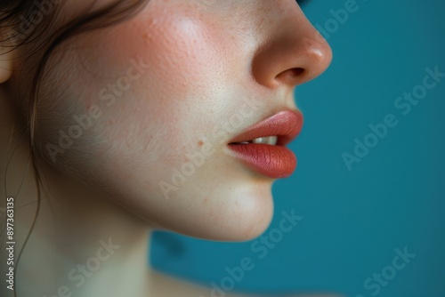 Intense Concentration - Profile of Person with Pursed Lips in Teal Blue