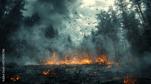 Intense Forest Fire Erupting Amidst Dark Smoke and Ash