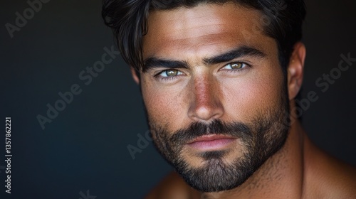 Intense Gaze: A Close-Up Portrait of a Handsome Man with a Beard