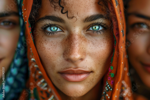 Intense Gaze of a Young Woman with Striking Blue Eyes