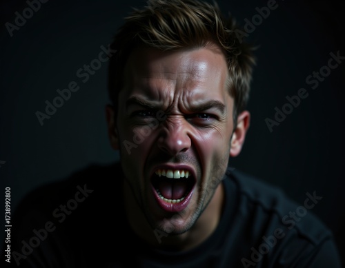 Intense Portrait of a Furious Young Man Expressing Raw Emotion