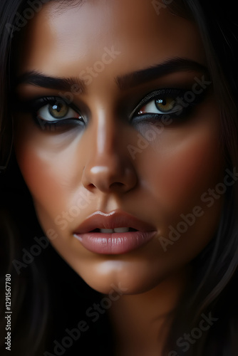 Intense portrait of a model studio photography dramatic lighting close-up beauty concept