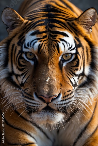 Intense Tiger Portrait Staring Ahead with Sharp Focus and Striking Details