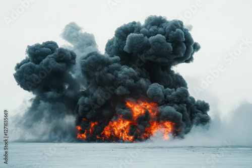 Intense vivid flames and billowing smoke rise dramatically against a stark isolated on a white backdrop --ar 3:2 --v 6.1 Job ID: 503123e9-f87c-44aa-b6d1-3a515f42be1e