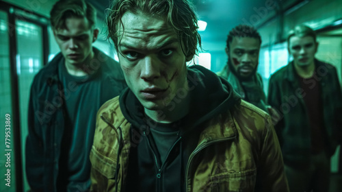 Intense young men in a gritty urban setting