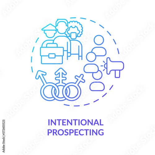 Intentional prospecting blue gradient concept icon. Job offer. Diversifying pipeline of candidate abstract idea thin line illustration. Isolated outline drawing. Myriad Pro-Bold font used