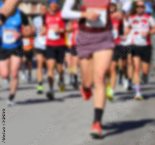 Intentionally blurred group of male and female sports runners with unrecognizable faces is ideal as a backdrop for a sporting concept