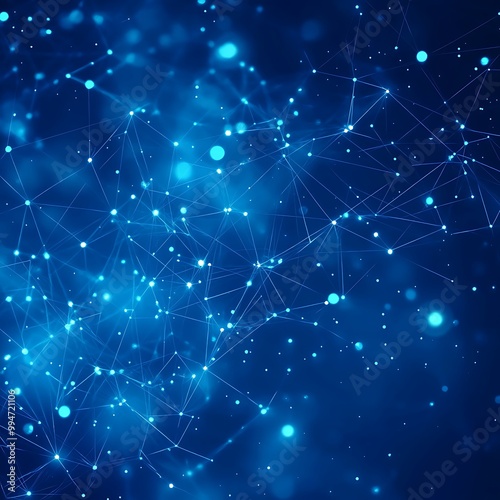 Interconnected Dots and Lines on Blue Background Create Abstract Design
