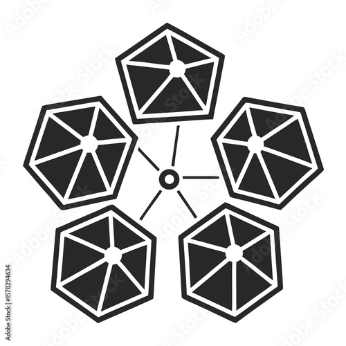 Interconnected geometric shapes forming a network blockchain connection