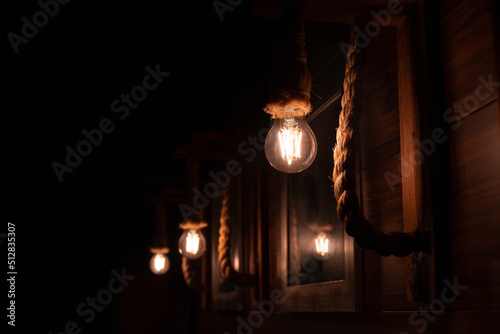 Interior decoration with lamps and ropes