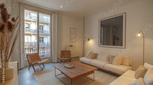 Interior Design of a Bright and Elegant Living Room with City View