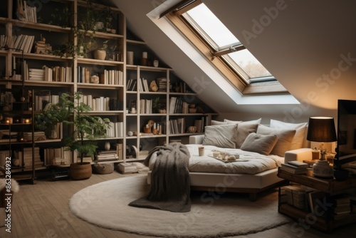 Interior of a modern loft apartment bedroom