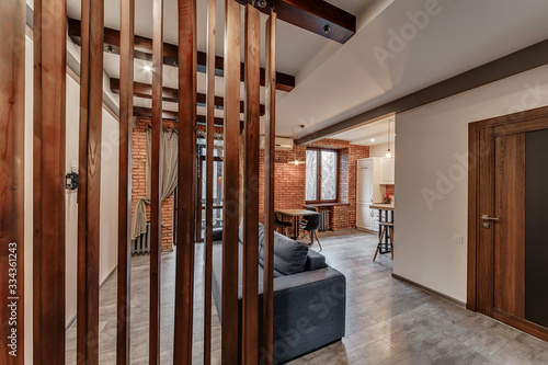 Interior of a modern loft style apartment. Living room and kitchen