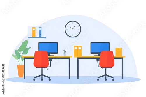 interior of a room silhouette vector art illustration open and lighting white modern office panoramic vision. front view. flat vector art illustration
