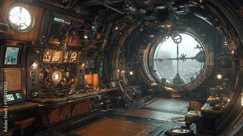 Interior of a Steampunk Spaceship with a View