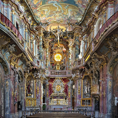 Interior of Asamkirche in Munich, Germany. The church was built in 1733-1746 and is considered to be one of the most important buildings of the main representatives of the southern German Late Baroque