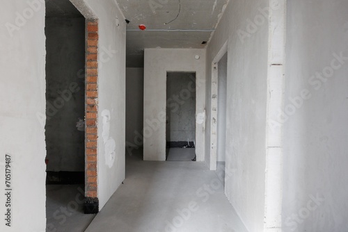 interior of the apartment without decoration in gray colors. rough finish