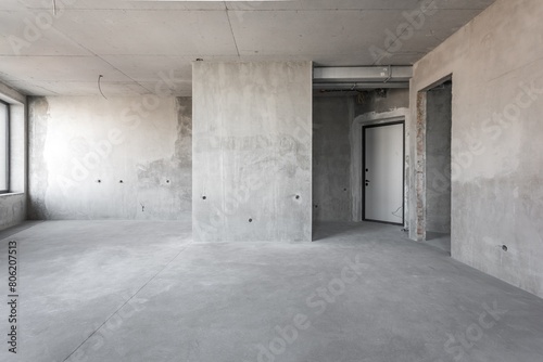interior of the apartment without decoration in gray colors. rough finish