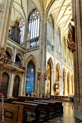 Interior of the St. Vitus Cathedral. The cathedral is the seat of the Archbishop of Prague and is the biggest and most important church in the country.
