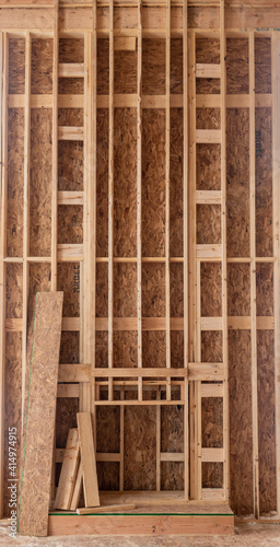 Interior view of skeleton fire place structure at a new American real estate development construction site