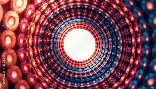 Interlocking circles forming a circular grid, monochromatic palette, geometry, decor, design element