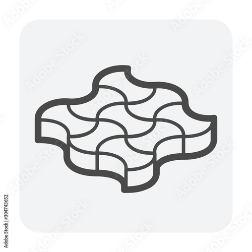 Interlocking concrete paver icon. For construction and lay on ground to create pattern in garden and outdoor. That is landscape architecture material with texture on surface. Made from concrete cement