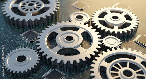 Interlocking Gears on a Circuit Board A Metaphor for Technological Processes and Precision