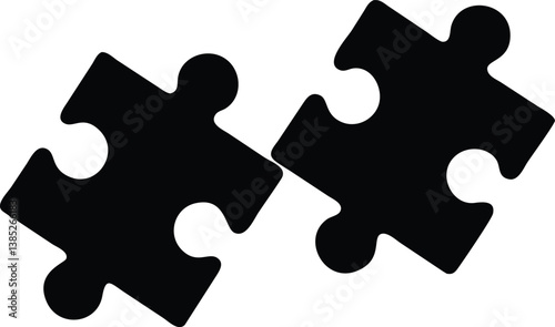 Interlocking Two Black Jigsaw Puzzle Pieces on Transparent Background