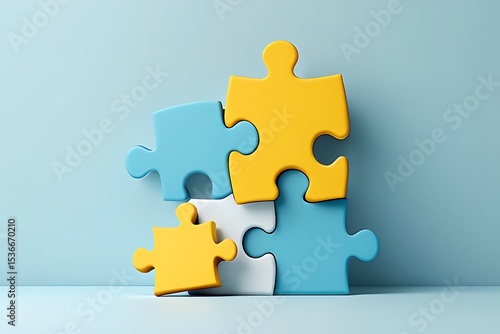 Interlocking Yellow Blue White 3 D Puzzle Pieces Teamwork Concept