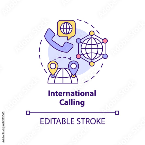 International calling concept icon. Global network. VOIP benefits for users abstract idea thin line illustration. Isolated outline drawing. Editable stroke. Arial, Myriad Pro-Bold fonts used