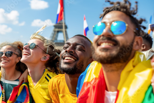 International fans from different countries celebrate the 2024 Olympic Games together in Paris.