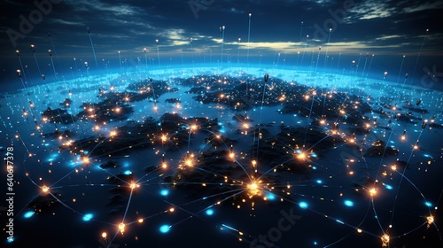 International internet day produces illustrations of the Earth and electronic networks,AI generated.