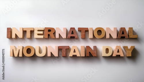INTERNATIONAL MOUNTAIN DAY wooden Thick block letters with minimal decoration, perfect word