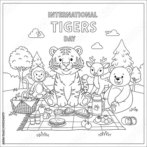 International tigers day coloring page for kids and adults to print and color online on transparent background