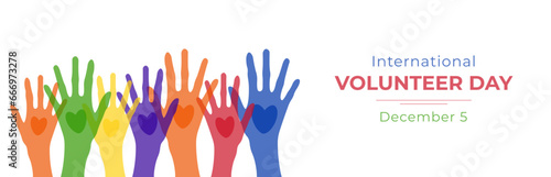 International Volunteer Day. Raised hands. Volunteer day concept. Vector illustration.