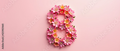 International Women's Day - March 8. Card design with number 8 of bright flowers