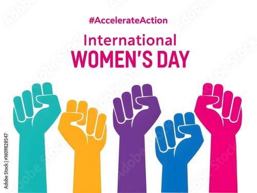 International women's day celebration with raised fists for female empowerment event
