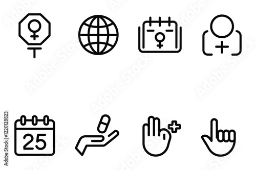 International Women's Day Minimalist Black Line Icon Set for Feminist Awareness and Equality