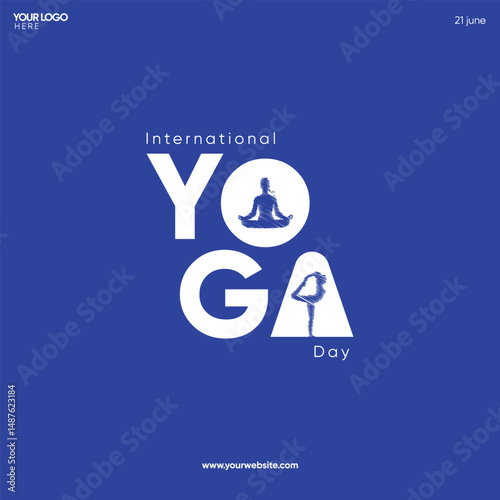 International Yoga Day Vector Design. Minimal Blue Background with Yoga Silhouettes vector illustration.