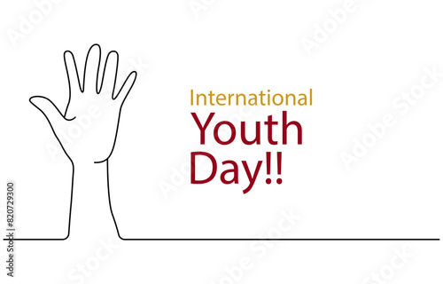 International youth day august 12 national world; Colorful hands with International Youth Day text; August 12, International Youth Day, minimalistic banner with the inscription in wooden letters;