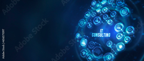 Internet, business, Technology and network concept. IT consultant presenting tag cloud about information technology. 3d illustration