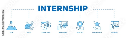 Internship icon infographic illustration concept with icon of goal, skills, knowledge, mentoring, practice, opportunity, and training icon png and easy to edit