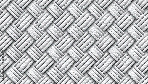 Interwoven cris cross metal fabric texture seamless blank white background. Abstract white background