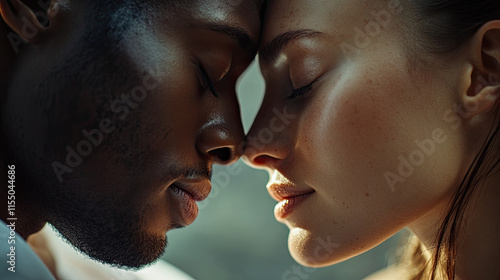 Intimate close-up of two people sharing a tender moment, highlighting connection and emotion.