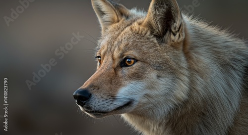Intimate Portrait of an Arabian Wolf: Fur Texture and Amber Gaze Detail